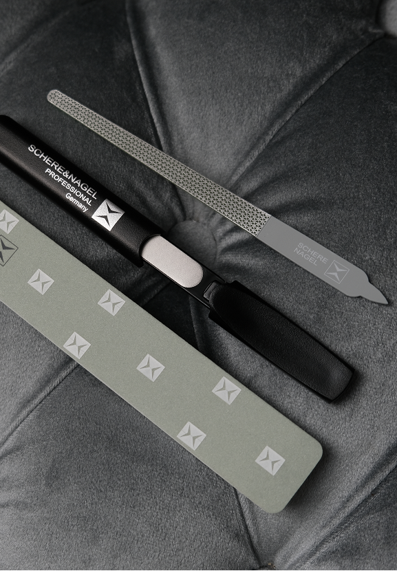 Секрет бренда заключается в уникальном подходе: инструменты воздействуют только на ороговевшие клетки, не травмируя при этом живую кожу: они перестают опиливать поверхность, когда ороговевший слой полностью устранен. Кроме того, маникюр с помощью «умных» штучек Schere Nagel оказывает массажный эффект и стимулирует кровообращение.